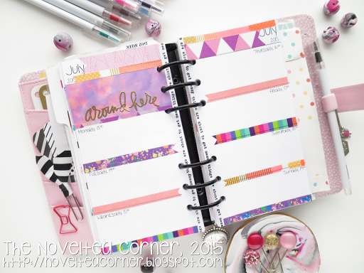 Usually when I decorate my planner, I pick a fairly simple colour scheme – about 3 different main colours so as not to overpower the layout itself.
