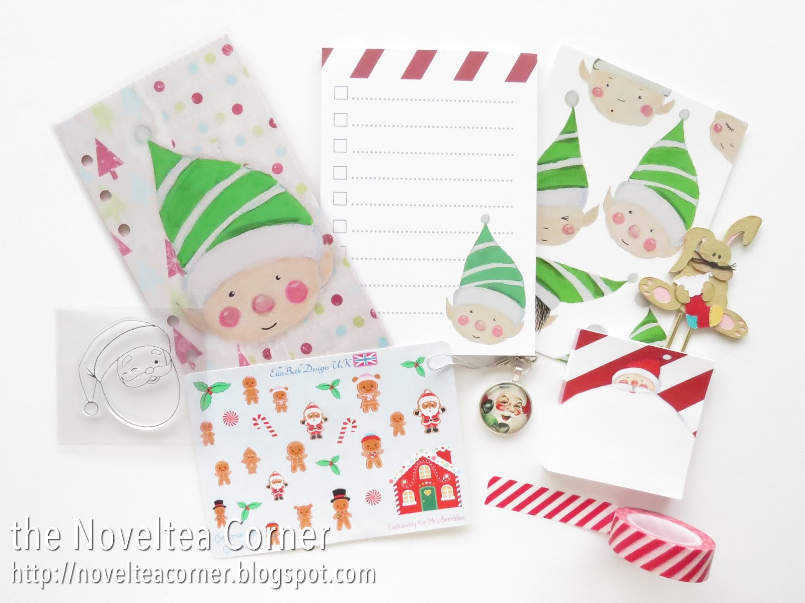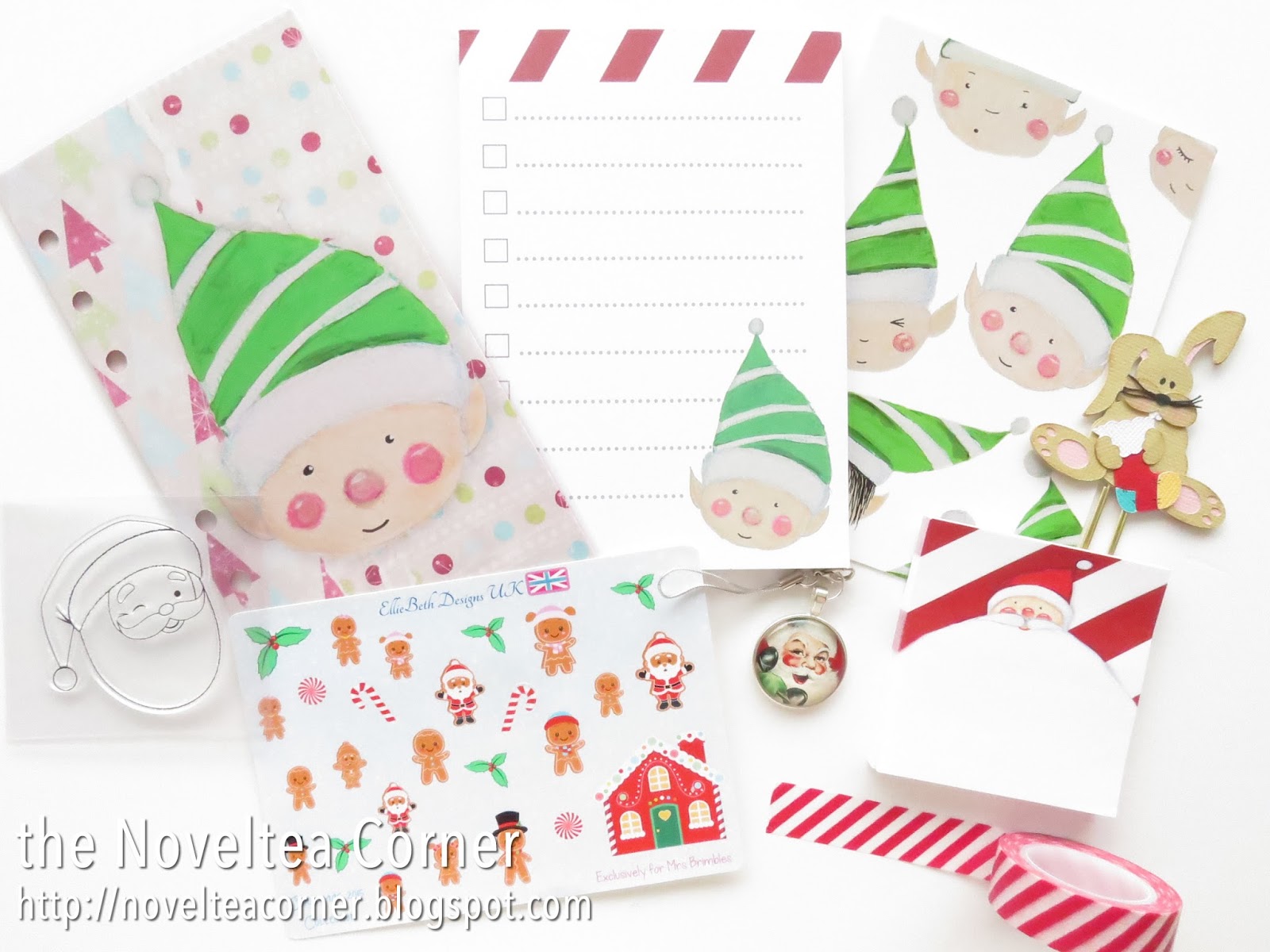 This box features unique items only found in the Brimbles Box, as well as other stationary items you can find in craft stores or online. This month there were three items with Anna‘s adorable illustrations – a personal size planner dashboard, a Santa sticky note pad and an elf checklist pad. There’s also another gorgeous bunny paperclip from Craftin’ Chaos and a planner sticker sheet from EllieBeth Designs UK, both which have been designed specifically for this box. There’s also a red/white stripe washi tape and a Santa stamp by Shimelle.