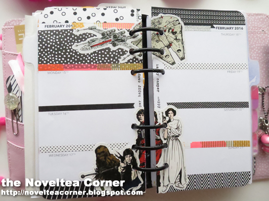 This week I decided to use up some fun Star Wars stickers I picked up ages ago (I think from Big W, but it was a while back) and my favourite black and white washi tapes and create a layout from a galaxy far, far, away!