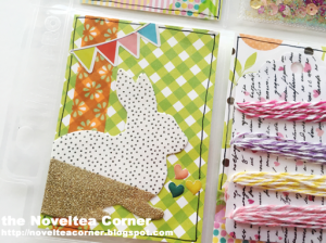 These cute bunny page flags were in my stash and I added them to a piece of the carrot design paper. I added an Amy Tangerine paperclip to the top to hold in the goodies on the back side of the pocket.