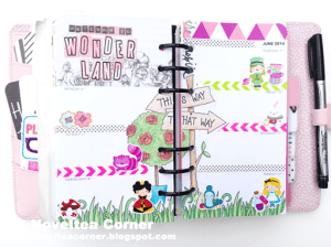I’ve had these stickers by The Sticker Alley for a while, and I finally found a fun way to use them with these fun digital elements by Kate Hadfield Designs. I also used some scrap scrapbooking papers, WuWu Alphabet Stamps by StudioL2e, black dot washi, chevron washi and purple triangles washi.