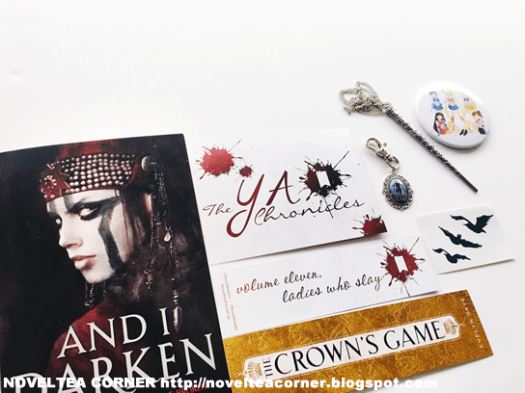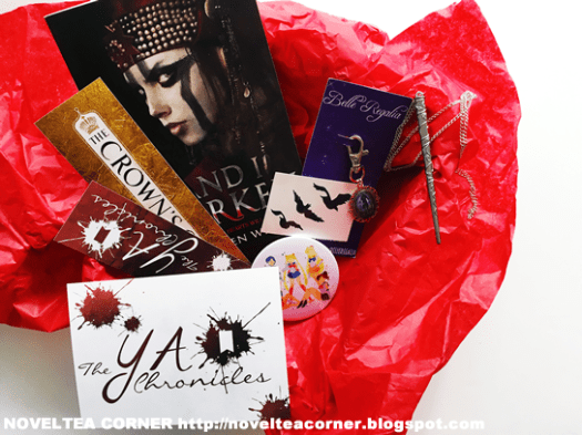 This month I subscribed to my first theYAchronicles subscription box. This is a monthly book subscription service, based in Australia, that sends out one new release book along with a collection of assorted book-related goodies. It’s $29.99/month plus shipping and handling, which is about $10. Each month, theYAchronicles has a theme.
