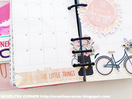 This month I decided to use up some of my pretty ephemera pieces to create a fun spread that hints at the upcoming Spring. (Because I’m over the dreary cold Winter, here. I’m dreaming of Spring!)