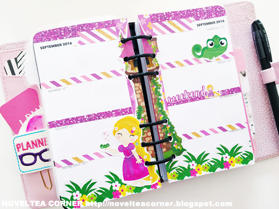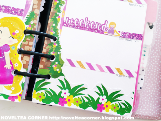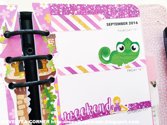 To celebrate, I decided to go with a theme of one of my favourite Disney movies, Tangled. I found some gorgeous stickers and graphics on Etsy and put them together to make my fun, brightly-coloured layout for my birthday week. It’s also very Spring-like, which is excellent because the weather today is beautiful and Spring-like, too.