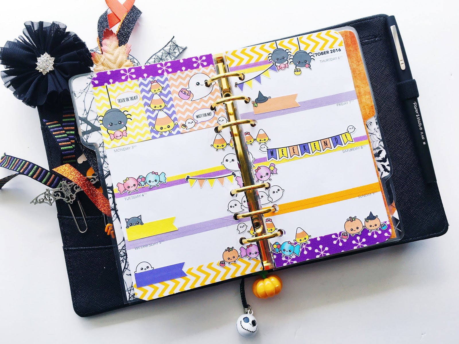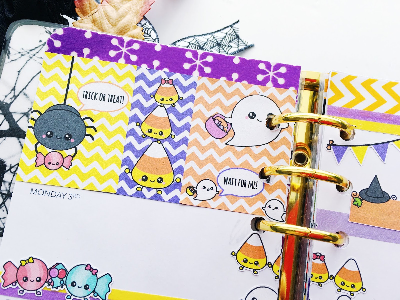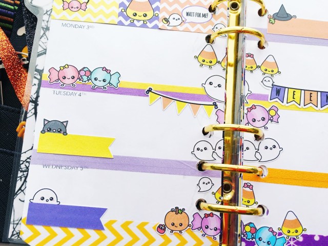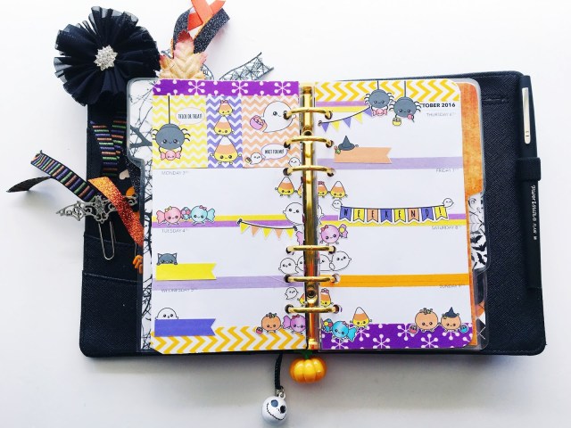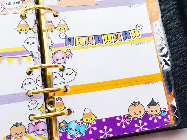 This week I was going through my sticker collection and I found this sticker kit that I bought last year and never used and so of course, I had to use it this year. It’s super cute and by STICKWITHME Stickers. I just love the cute little Trick-or-Treating characters!
