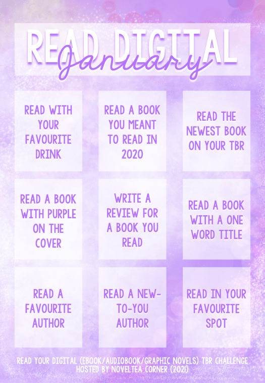 I’m continuing my #ReadDigital challenge in 2021 to help me read through all the digital books I have sitting on my devices. If you’re unfamiliar with this challenge, it’s a very low-key reading challenge to encourage everyone to read ebooks, audiobooks, digital comics, fanfic or any other ‘digital’ reading content they have that they just haven’t had time to pick up yet.
